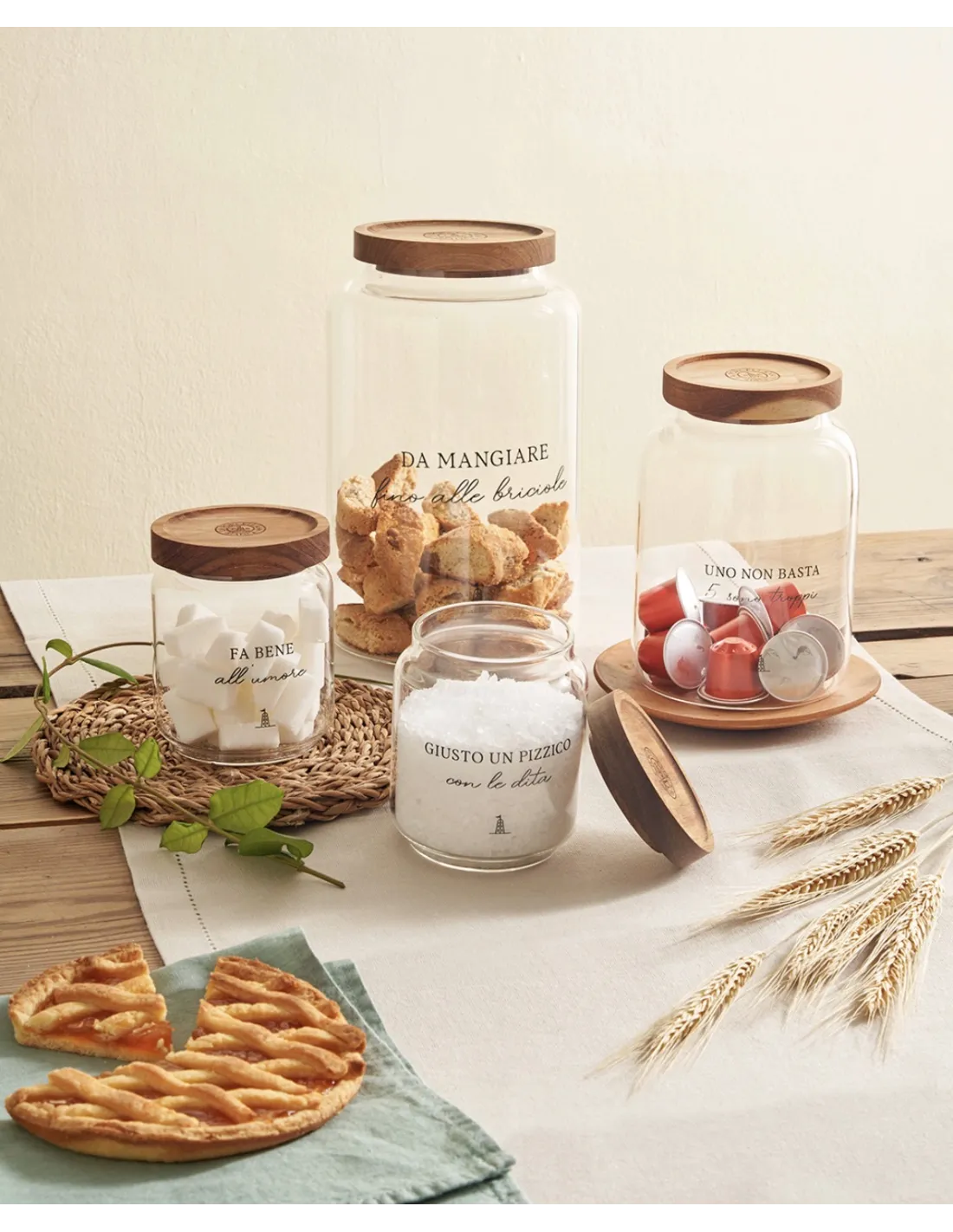 Su Cose di Casa store, scopri gli arredi e complementi per arredare la tua casa: Barattolo Biscotti I Garbati In Vetro Borosilicato Con Tappo In Legno D' Acacia al prezzo migliore