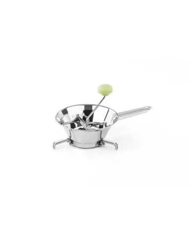 Multifunzione, in realtà potrebbe essere chiamato “passatutto”. Corpo realizzato in acciaio inox 18/10, dispone di 3 piedini mobili per consentire di posizionarlo su recipienti di diversa capienza con la massima stabilità. Tre filtri intercambiabili con fori di dimensioni diverse per scegliere la grana di passatura corretta. Dotata di manico con pomolo colorato si toglie facilmente per una totale pulizia