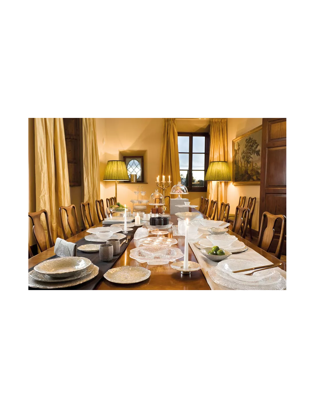 Piccole punte di diamante risplendono sulla tavola, luminoso e raffinato il piatto della linea Diamantè.
